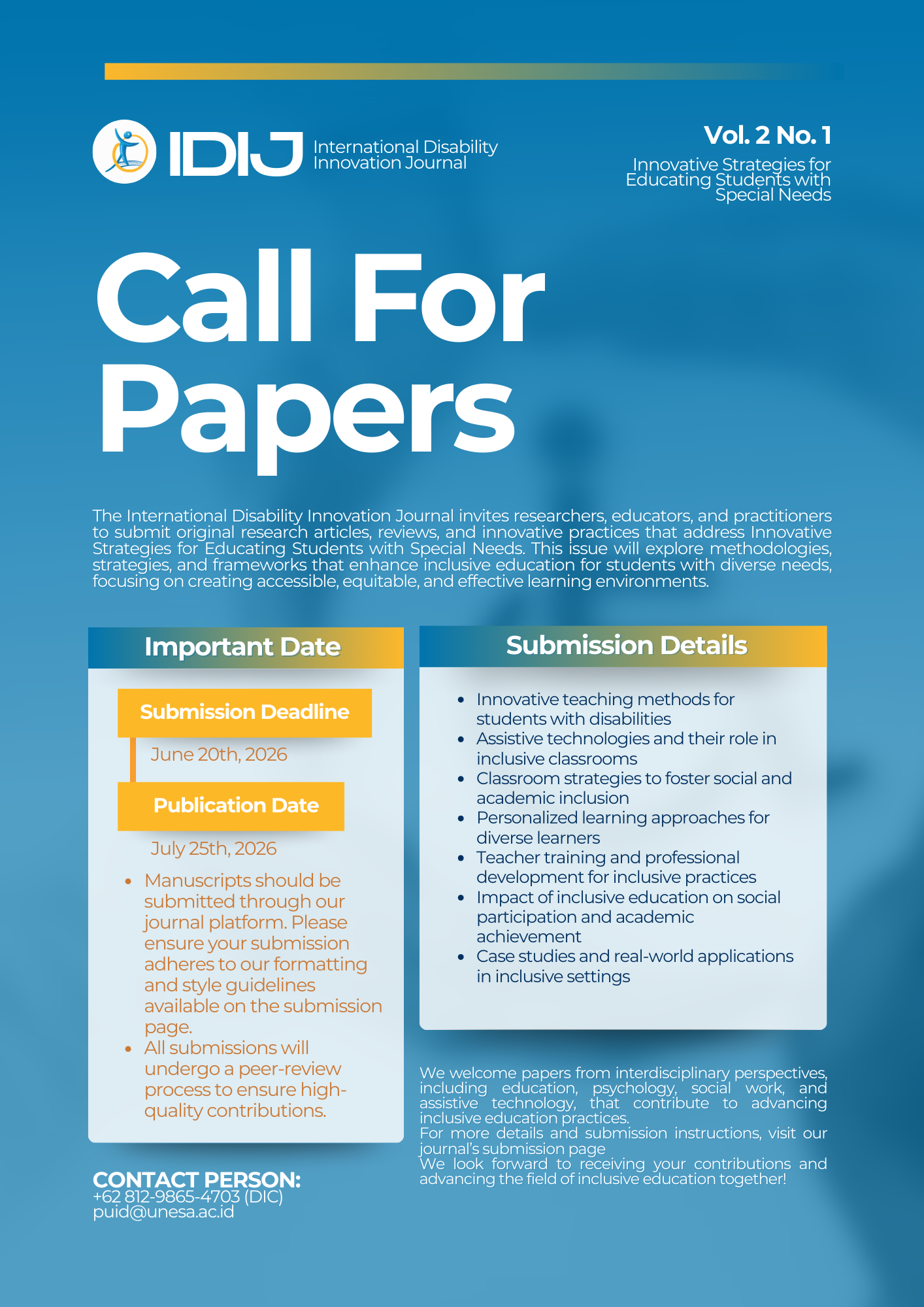 For more details, please visit our website International Disability Innovation Journal