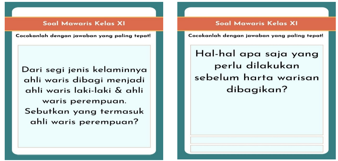 Islamic education knows a lot of mathematics that is delivered to students, one of which is related to the rules of human life, namely fiqh, and fiqh is also known as boring mathematics if the delivery is not pleasant from the teacher. From these problems, the researcher will discuss the learning process and learning outcomes of students using think pair share with the help of card sort. The purpose of this study is to determine the improvement of student learning outcomes in fiqh lessons of Mawaris mathematics by using card sort-assisted think pair share learning. The research method used in this study is qualitative research using a descriptive approach. The place of this research is at MA Ma'arif 14 Sukorame Lamongan. The main source of data in this study is teachers, fiqh teachers, students. The results of this study show that the use of card sort media in teaching can make students more involved and active in the learning process, so that they are more active in discussing and generating ideas. The use of the card sort-assisted Think Pair Share method also provides a clearer understanding of the mathematics, and a more effective learning strategy. This approach can be adapted to a variety of learning models, allowing learners to learn more effectively and efficiently. Using the card sort-assisted Think Pair Share method in Mawaris lessons can improve students' learning experiences and encourage creativity.