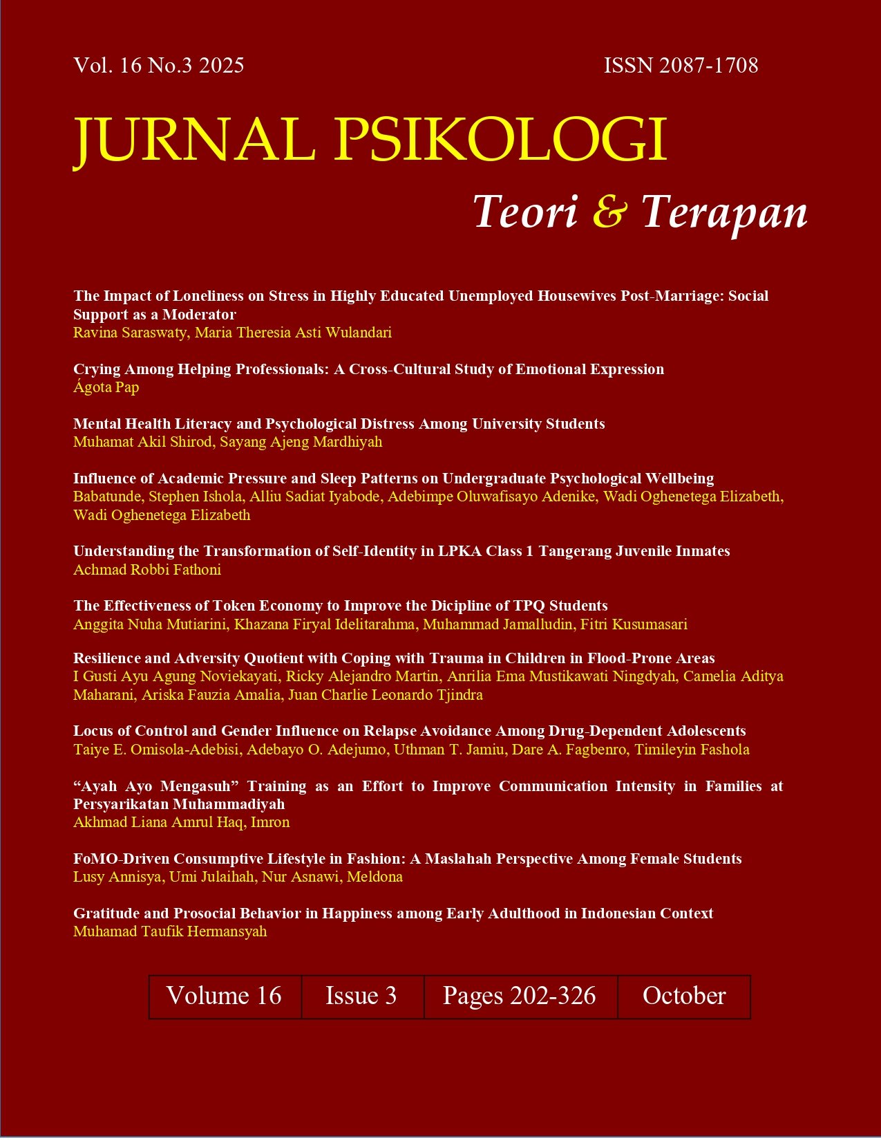 Ajayi, I. O., Olapegba, P. O., & Uye, E. E. (2025). Parenting Styles, Sexual Abuse and Self-esteem as Predictors of Sexual Orientation among Undergraduates. Jurnal Psikologi Teori Dan Terapan, 16(01), 18–26. https://doi.org/10.26740/jptt.v16n01.p18-26